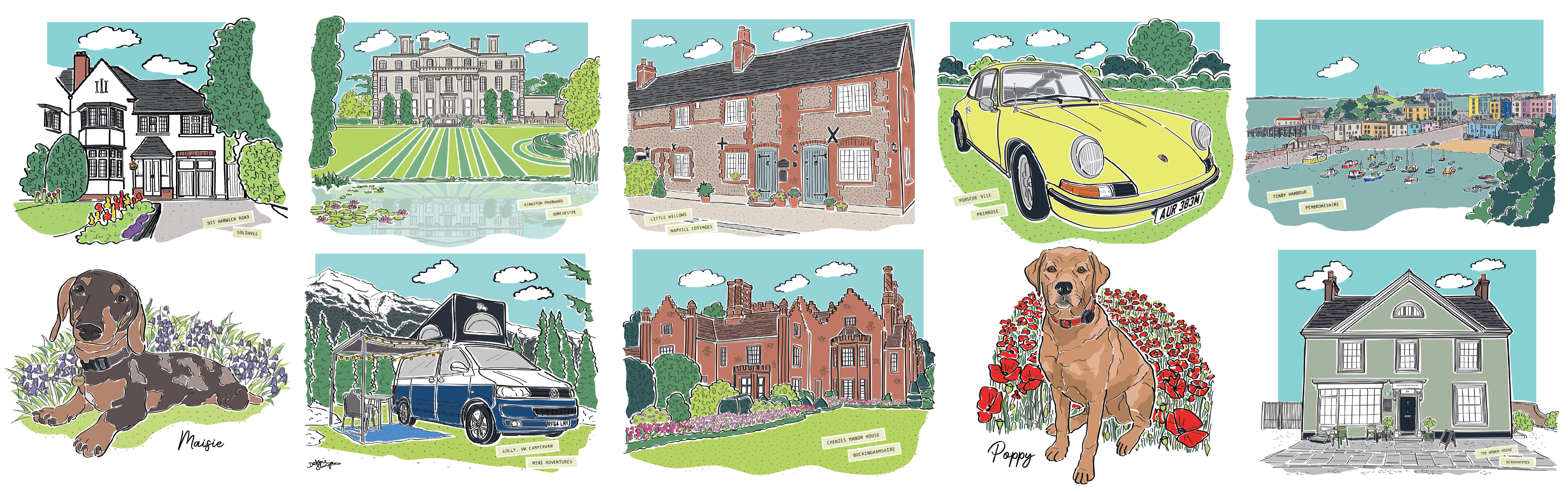 All my illustrations are hand-drawn from your photos. Simply email me or upload a picture of what you’d like illustrated, taken from your favourite angle:
