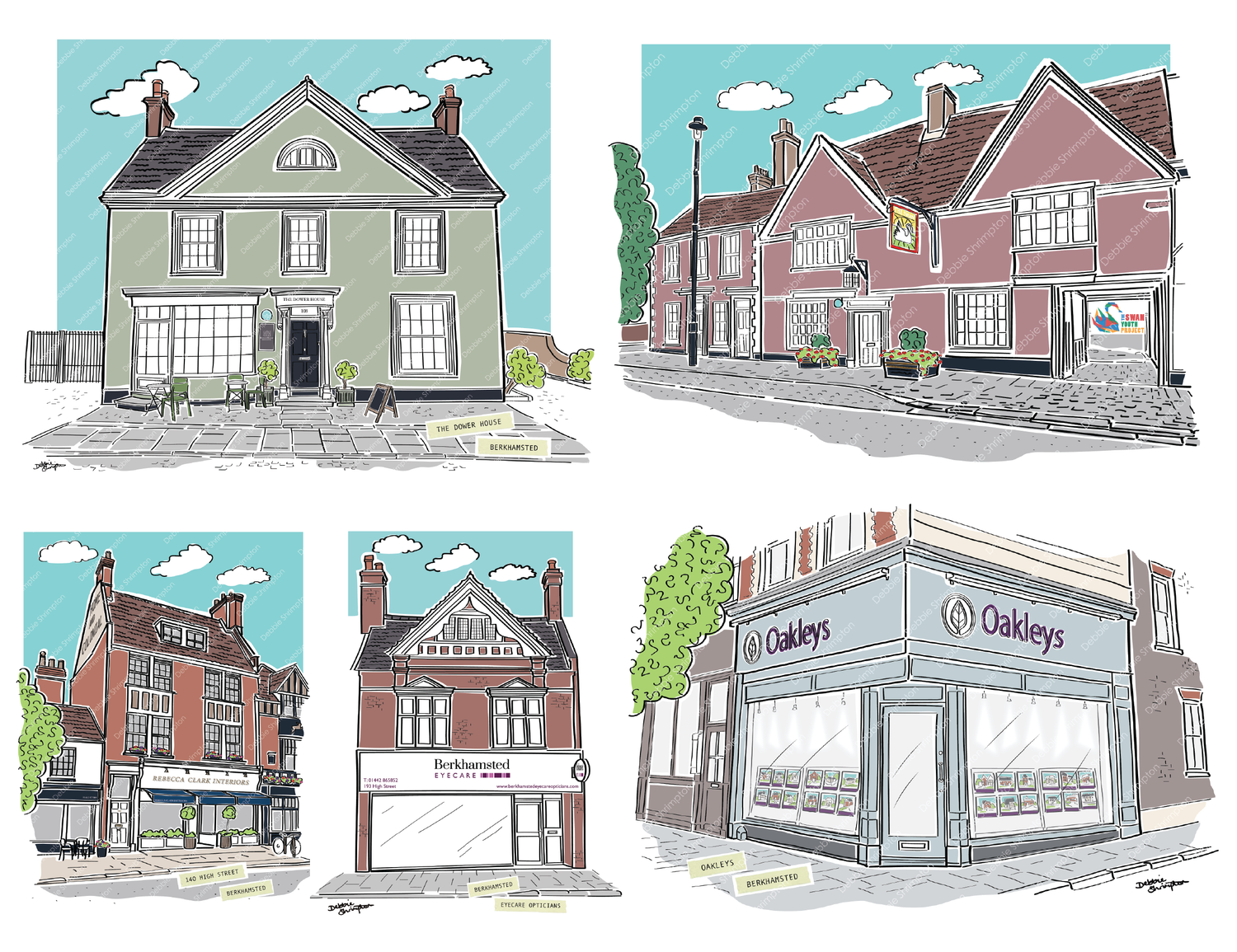 Commission me to illustrate your shop front, business premises, cafe, memorable place. I will create bespoke framed artwork, large scale canvases for wall art, printed merchandise or digital files to bring new life to marketing imagery and branding possibilities.
