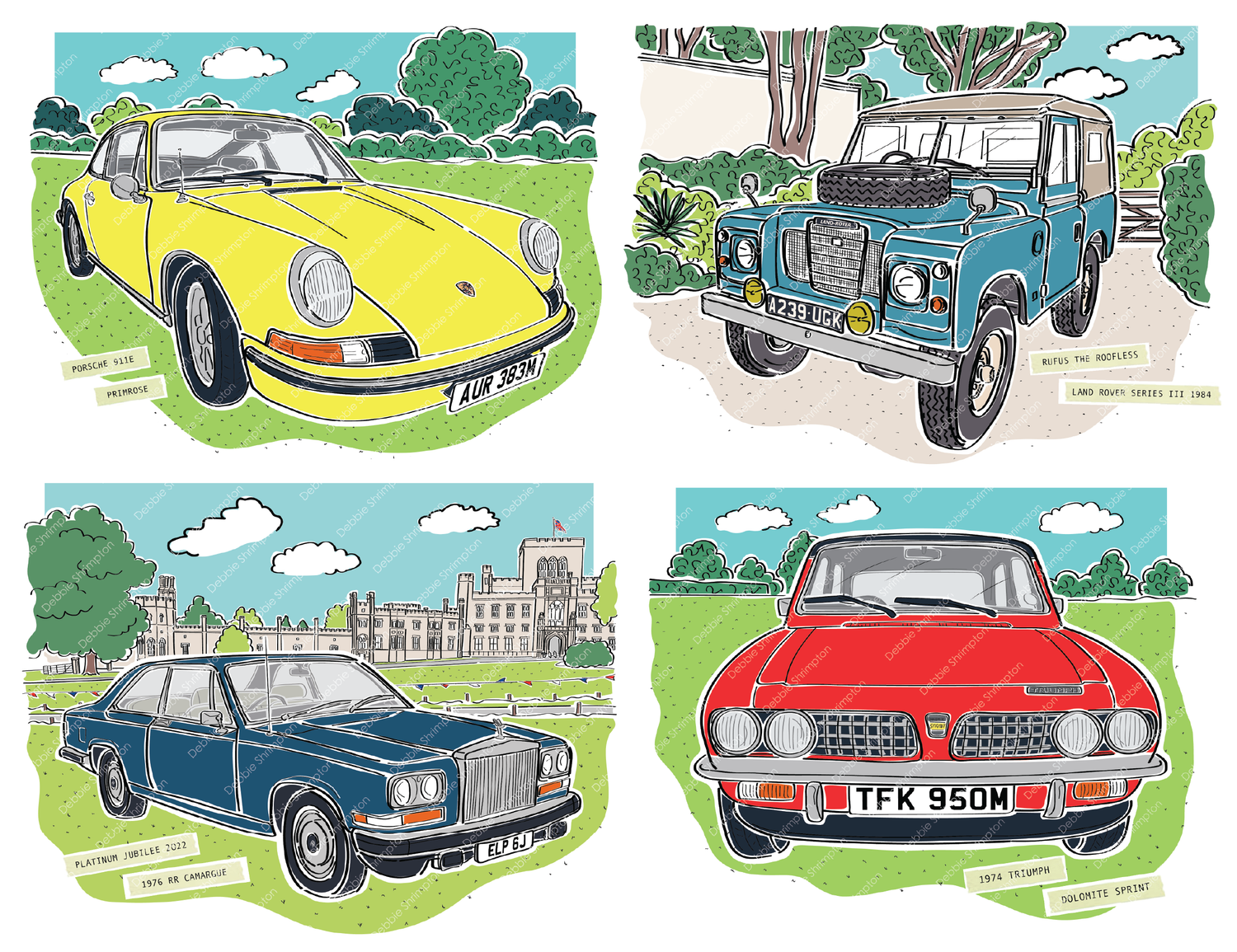 Commission me to illustrate your loved motor from your favourite photo. Take a photo to show off the best angle for detail. Choose from a background of generic bushes and fields or ask me to draw a location of your choice.