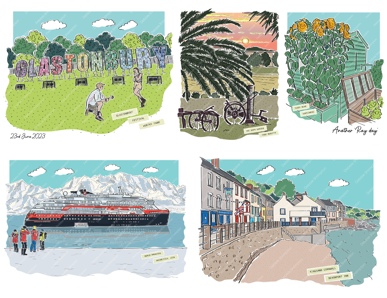 Let me capture that treasured moment, whether it be a proposal, a significant memory, a holiday, a view, a moment of celebration. Send me a photo and I will make suggestions of how I can use my joyful illustration style to create a treasured keepsake.