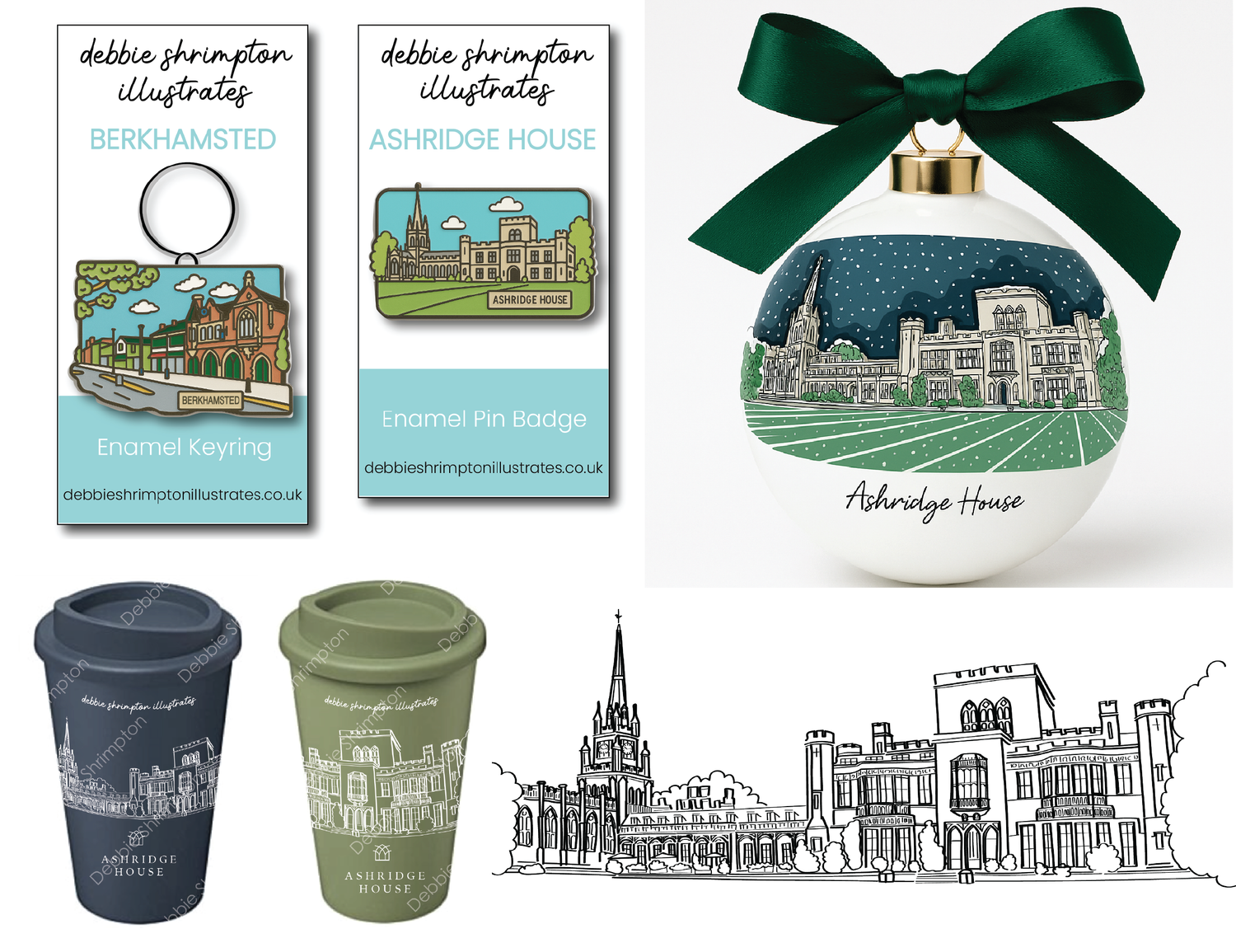 Illustrated keepsakes for Businesses and Events. Commission me to create a drawing of your Business or Venue for office art, stationery, Christmas baubles, badges, key-rings and Corporate Gifting.