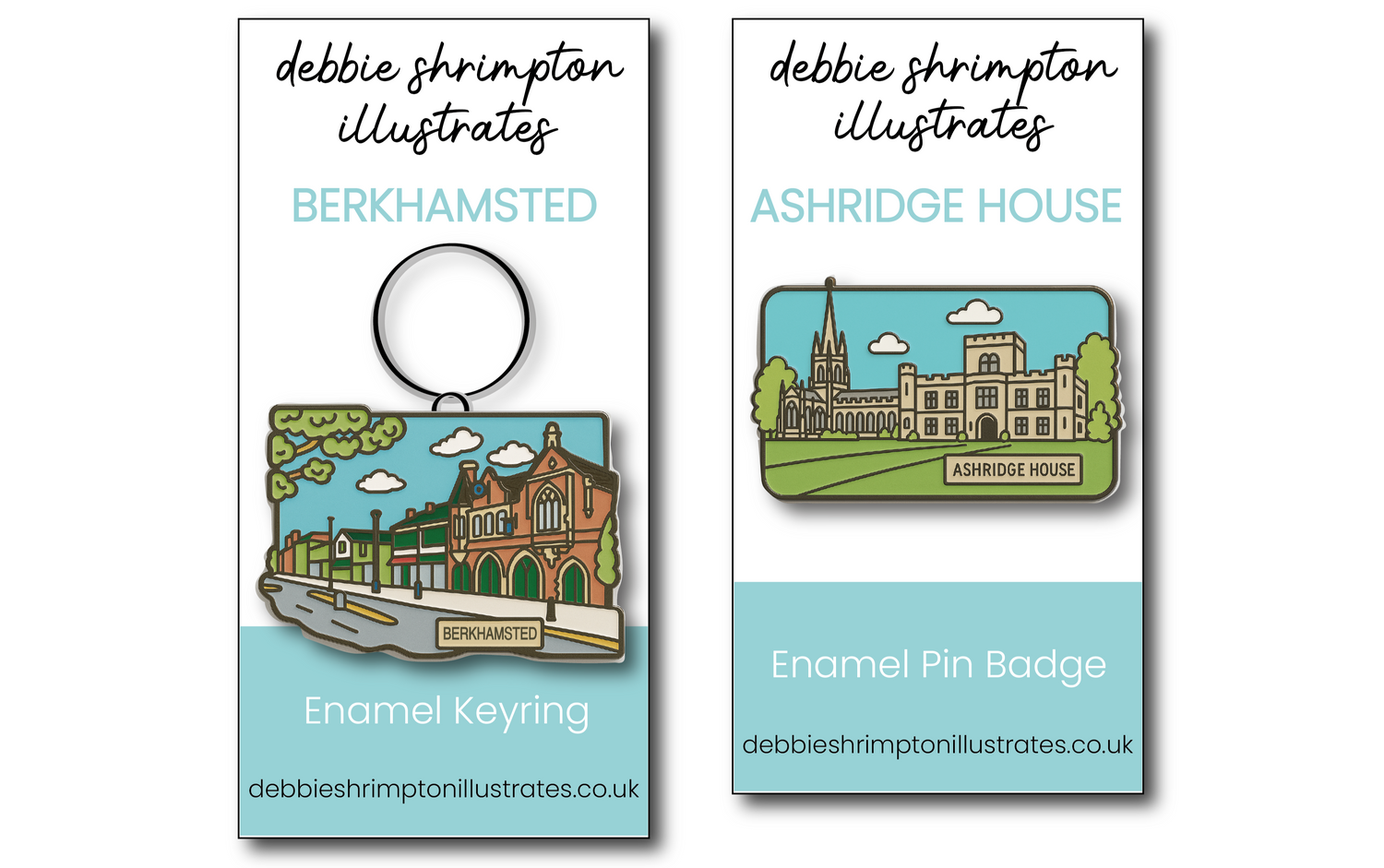 Venues, events and views are illustrated and turned into gorgeous enamel coated metal keyrings and luxury pin badges.