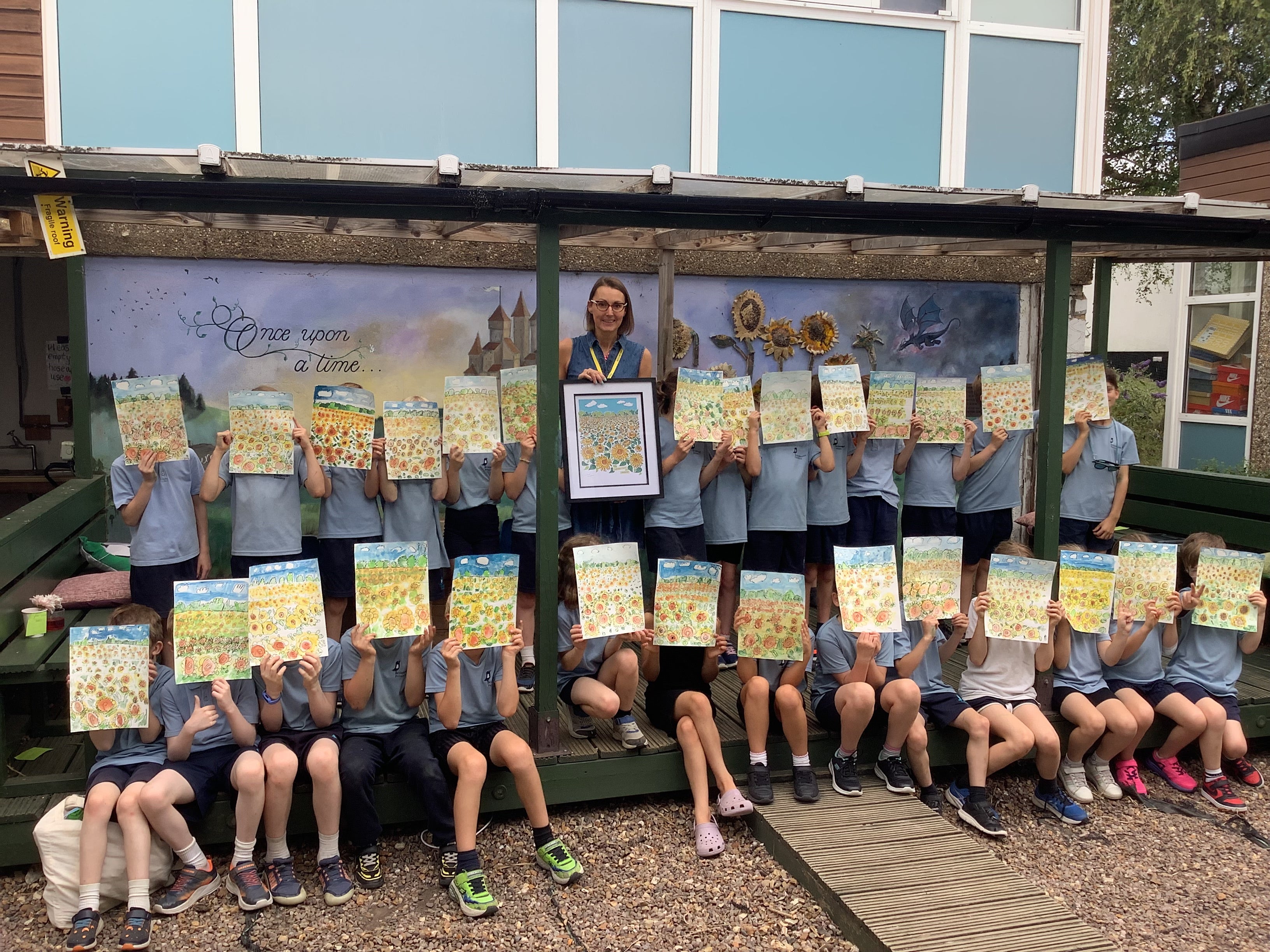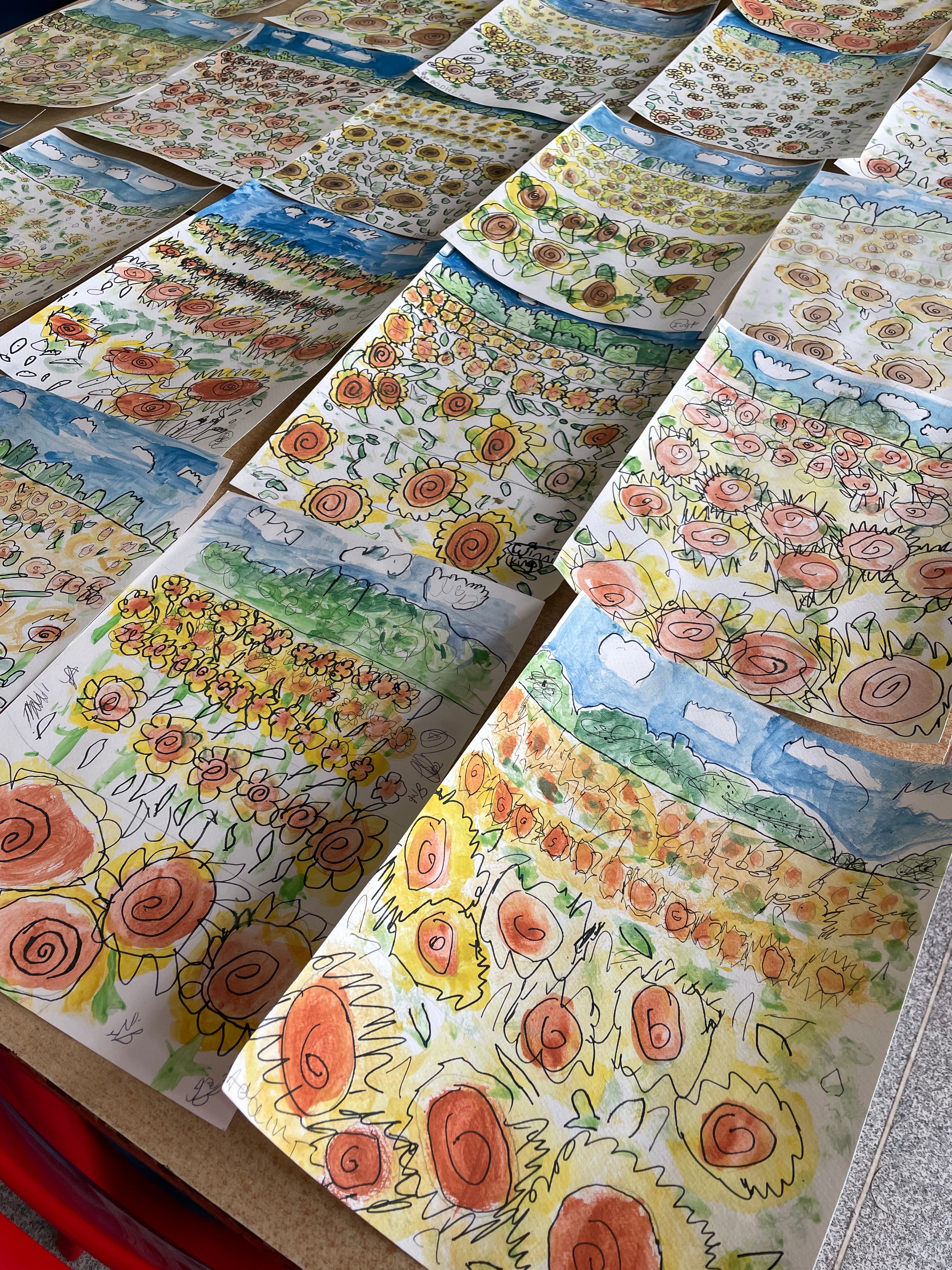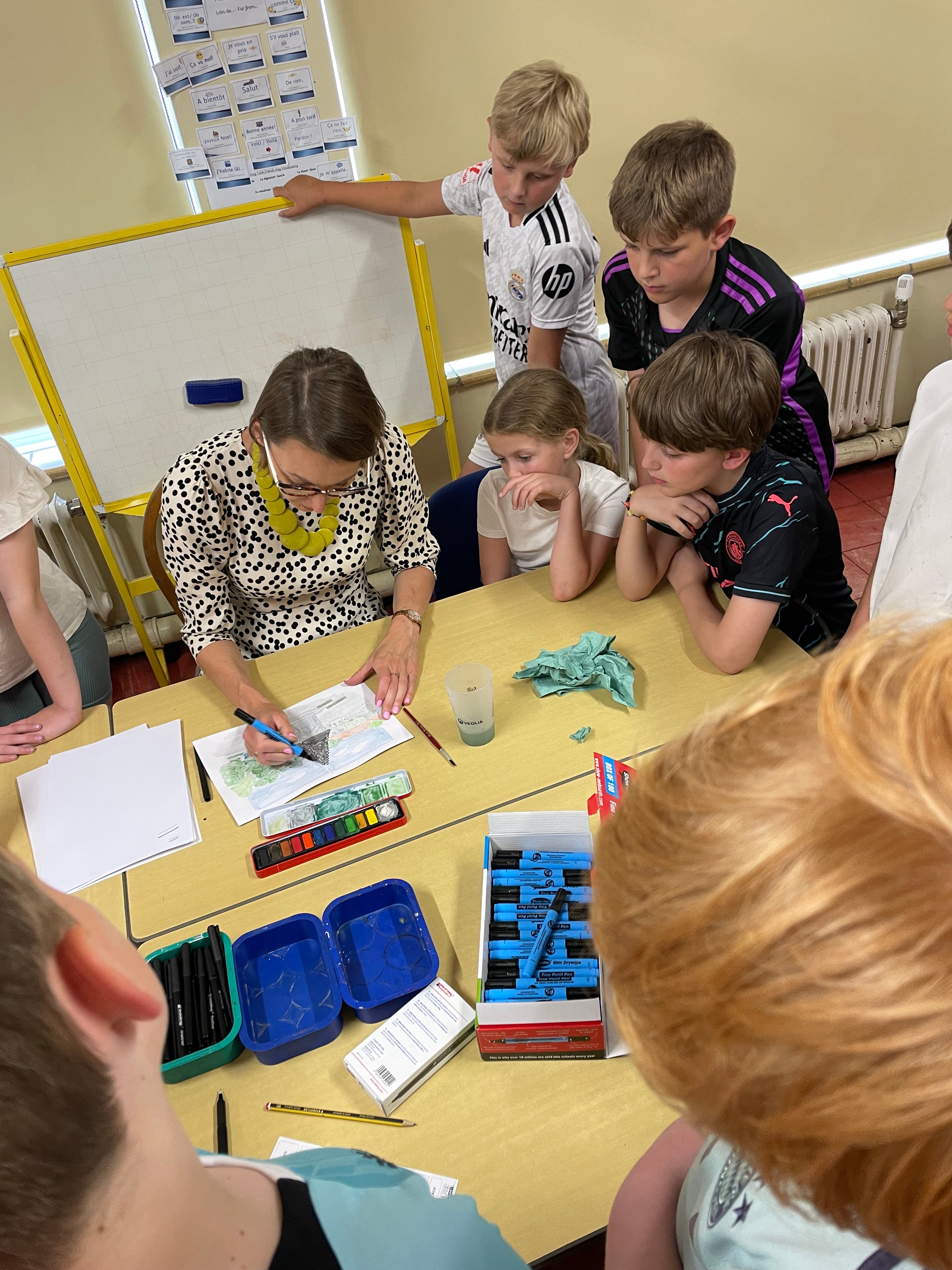 After the presentation, I guide the children step by step through their own illustration project. We explore drawing techniques, use watercolours for colour blocking, and experiment with mark-making and line art. Every child is supported and encouraged at their own level, and by the end of the workshop they have a completed piece of artwork they can be really proud of — and most importantly, get to sign their masterpiece.