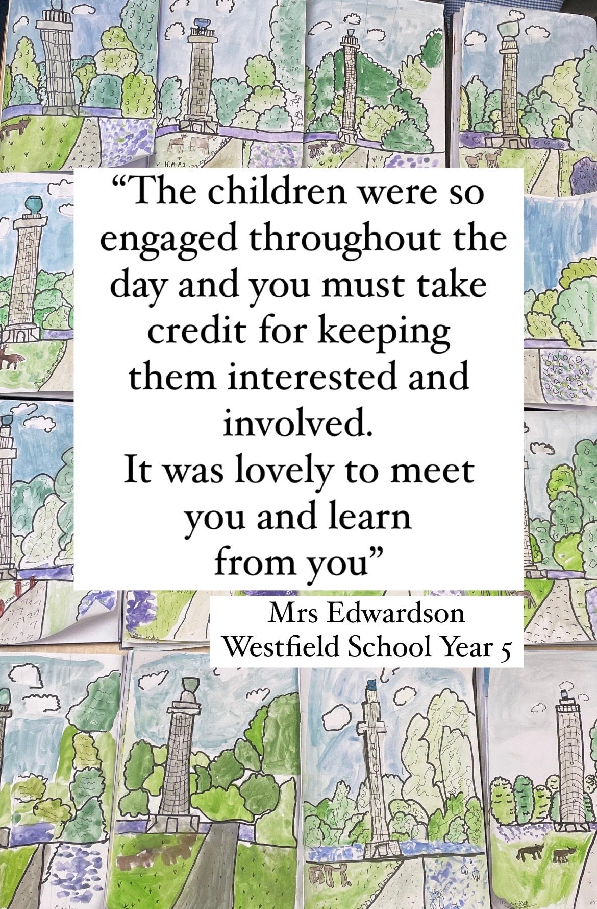 Workshops are flexible to fit around your school day and are designed for Key Stage 2. Sessions can also be linked to your current topics of study, with a local landmark illustration chosen that is both relevant and recognisable to the children. They’re a wonderful way to build children’s confidence, encourage creativity, and give them a memorable experience of working like a real illustrator.