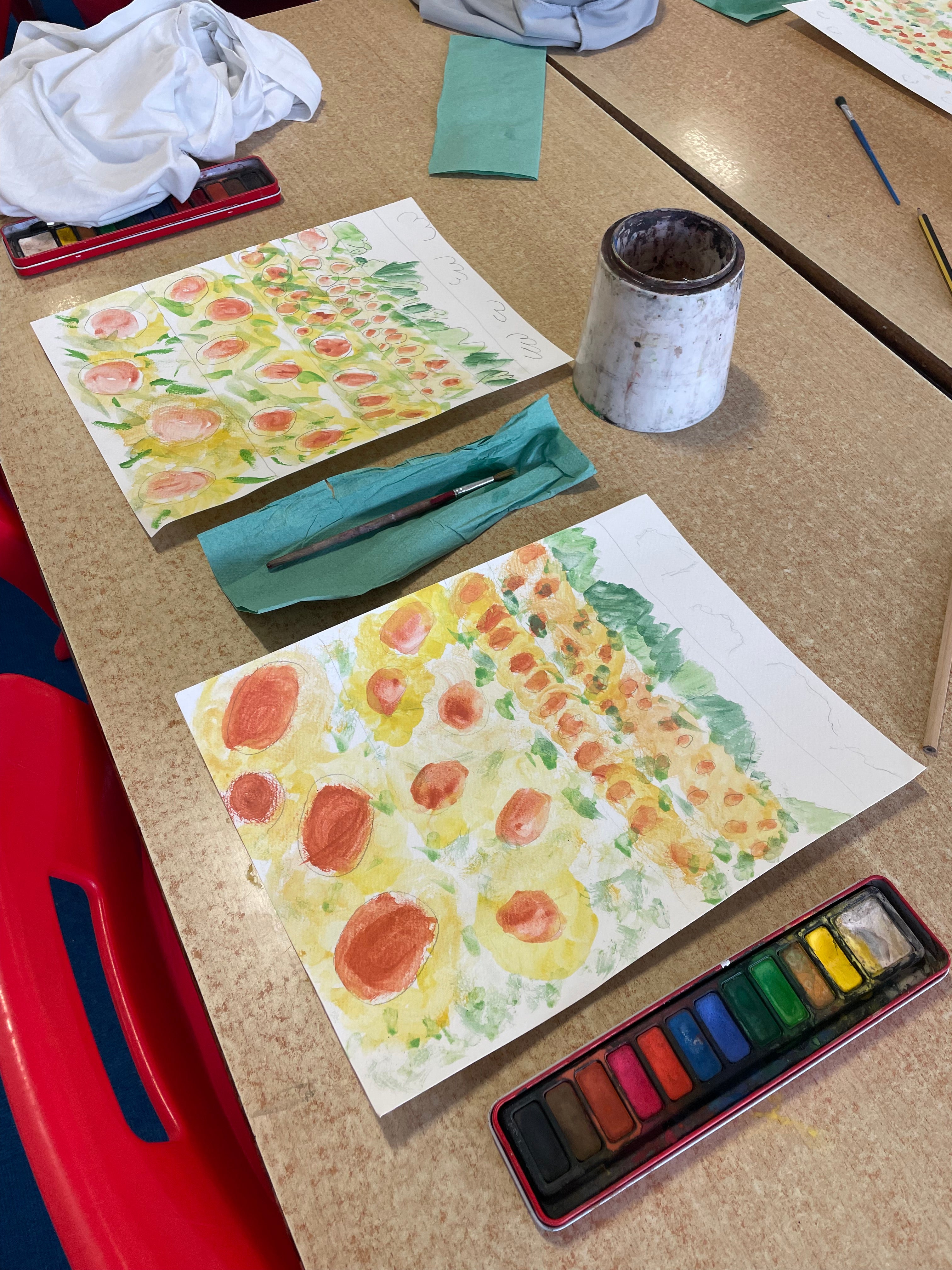 4. Watercolour Technique: I will teach children how to apply block colours using watercolours.