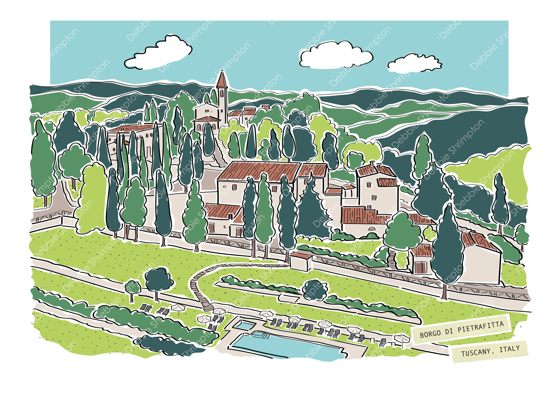 Borgo Di Pietrafitta, Tuscany by Debbie Shrimpton Illustrates.