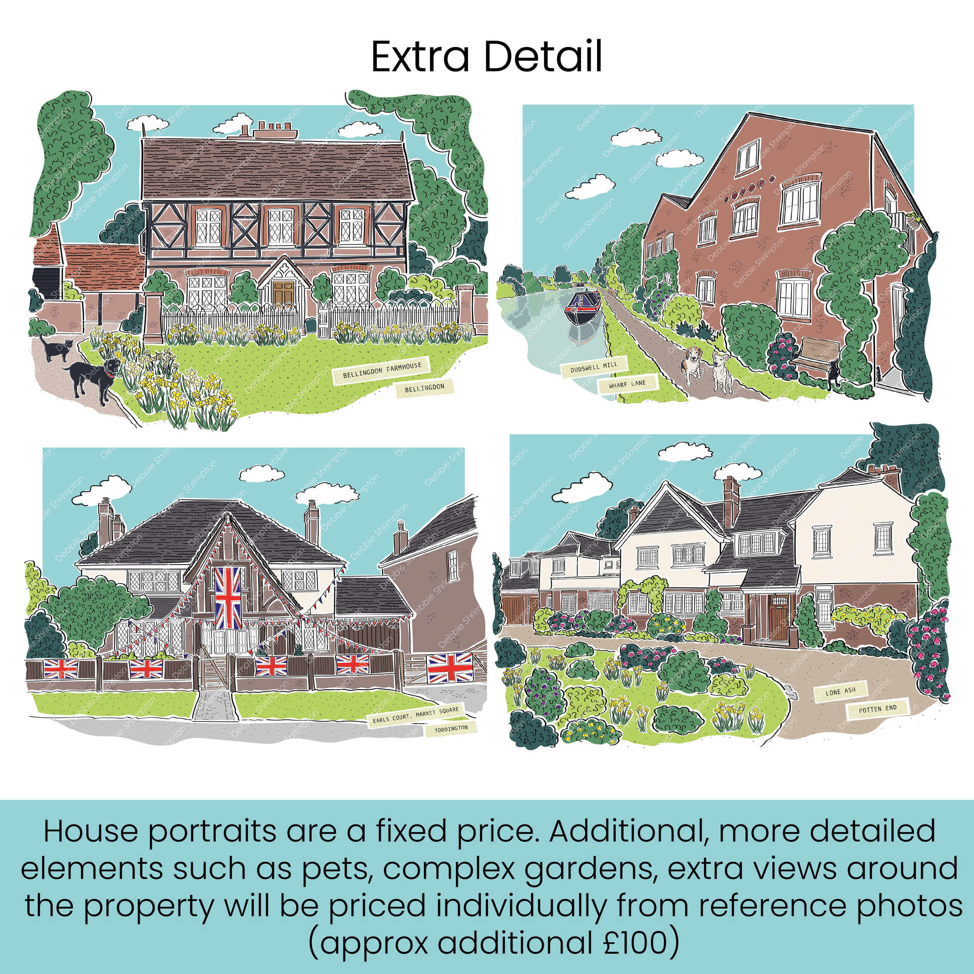 Please also either upload a photo of your home at the check out or email it to me debbie@debbieshrimptonillustrates.co.uk