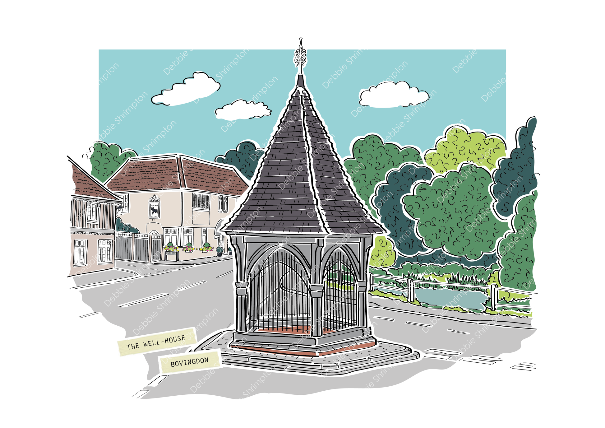The iconic Well-House Bovingdon illustrated by Debbie Shrimpton Illustrates. The historic pinnacle of Bovingdon village centre.