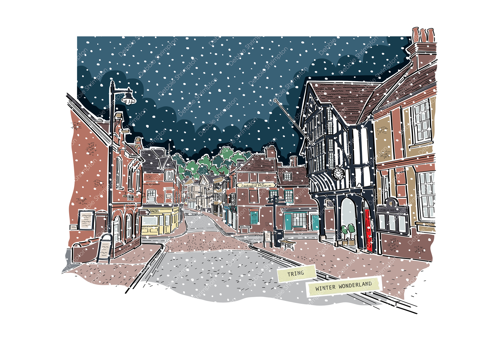 A celebration of loving local, illustrating my local town of Tring. The beautiful market town of Tring and some its iconic buildings including the sign to the famous Rothschild founded Natural History Museum.