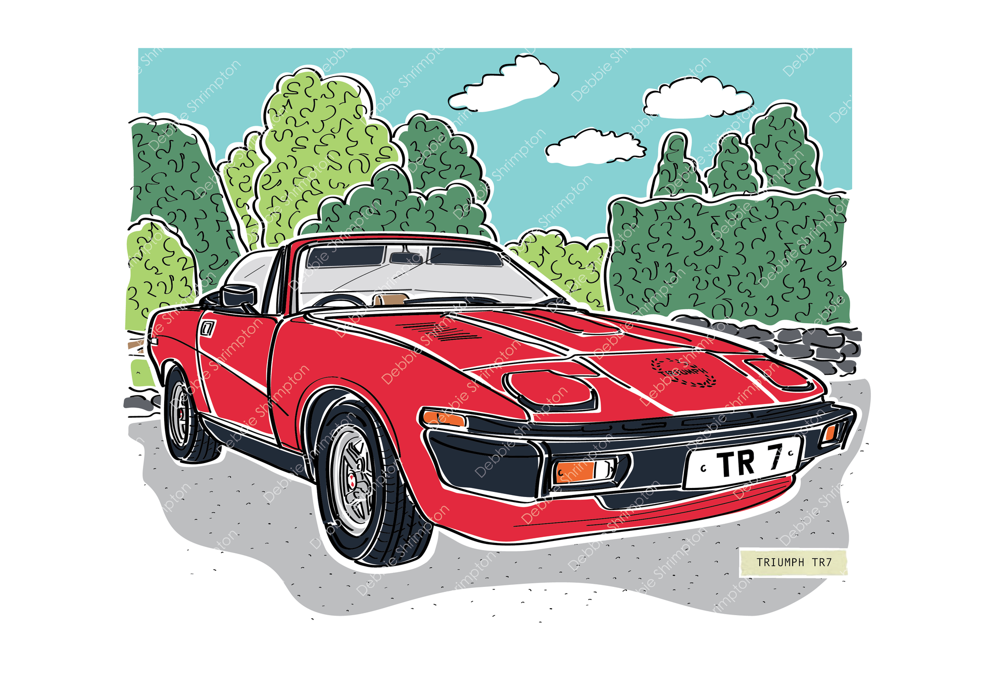 Illustration can be personalised with names, dates, personal message. Paint colour can be changed, personalised number plate added etc to make your artwork bespoke . Please add the personalised text requirements into the notes section at checkout
